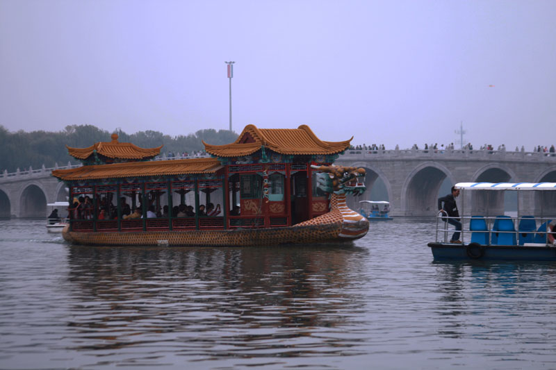 SUMMER PALACE: LAIR OF THE DRAGON LADY The Summer Palace (Yíhé Yuán; literally "Gardens of Nurtured Harmony") is a palace in Beijing, China. The Summer Palace is mainly dominated by Longevity Hill and the Kunming Lake. It covers an expanse of 2.9 square kilometres, three quarters of which is water. The central Kunming Lake covering 2.2 square kilometres was entirely man made and the excavated soil was used to build Longevity Hill. In the Summer Palace, one finds a variety of palaces, gardens, and other classical-style architectural structures. Dating back to the mid-1700s, the palace complex suffered two major attacks—during the Anglo-French allied invasion of 1860 (with the Old Summer Palace also ransacked at the same time), and during the Boxer Rebellion, in an attack by the eight allied powers in 1900. The garden survived and was rebuilt in 1886 and 1902. In 1888, it was given the current name, Yihe Yuan. It served as a summer resort for Empress Dowager Cixi, who diverted 30 million taels of silver, said to be originally designated for the Chinese navy (Beiyang Fleet), into the reconstruction and enlargement of the Summer Palace.