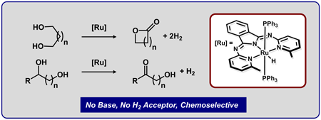 - 5.) Tseng, K. T.; Kampf, J. W.; Szymczak, N. K.; Base-Free, Acceptorless, and Chemoselective Alcohol Dehydrogenation Catalyzed by an Amide-Derived NNN-Ruthenium(II) Hydride Complex.