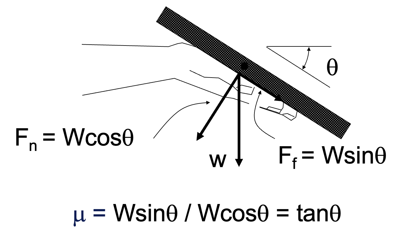 The static CoF can be estimated by placing an object on a flat hand and calculating the tagent of the tilt angle at which the object begins to slide (see Fig 2) (Seo et al. 1999).