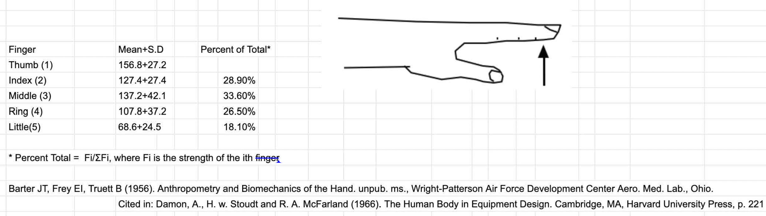 Kroemer K, Gienapp E (1970): Hand-held device to measure finger (thumb) strenght. J Appl Phys. 29(4):526-7.