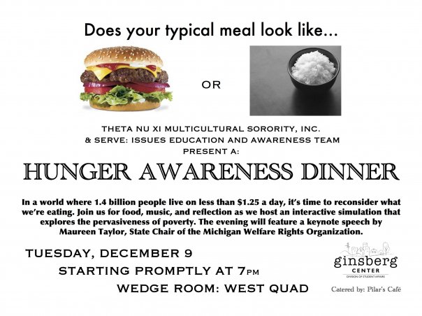 - December 9 - Chapter Founders' Dinner [flyer], hunger banquet highlighting global poverty