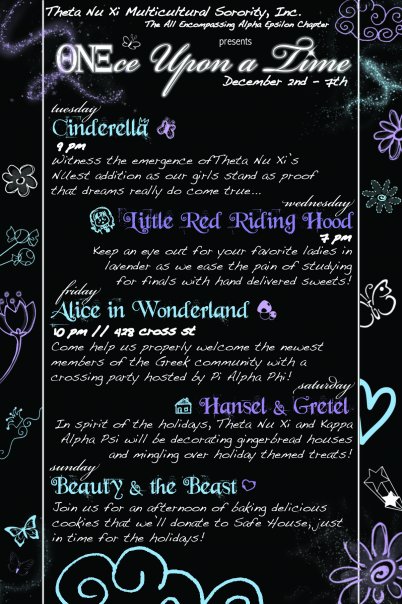 - December 2-7 - Chapter Founders' Week: "ΘNΞce Upon a Time" [flyer]