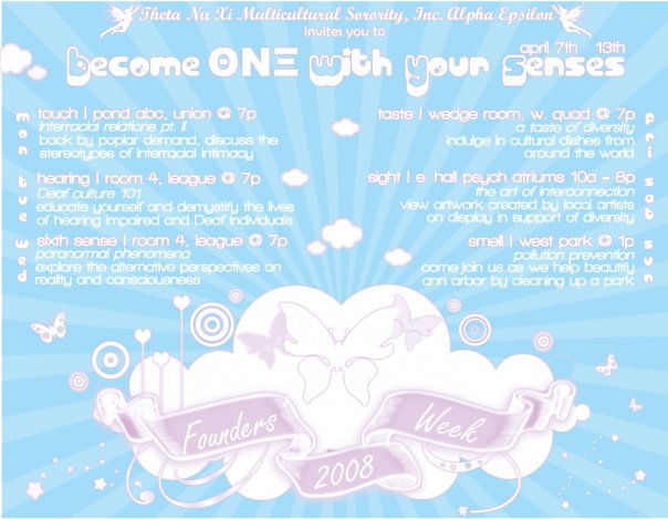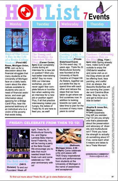 - April 9th-13th - Theta Nu Xi Founders' Week