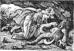 Lewis Carroll's "Jabberwocky" creates an ugly monster that manifests children's fears of the idea of evil. Carroll uses an imaginary language with a cadence that paints a grotesque picture of the Jabberwocky as a symbol of chaos and evil (Price and Price 89). The hero of the poem, however, defeats the monster, and in doing so the child finds relief in the triumph over evil.