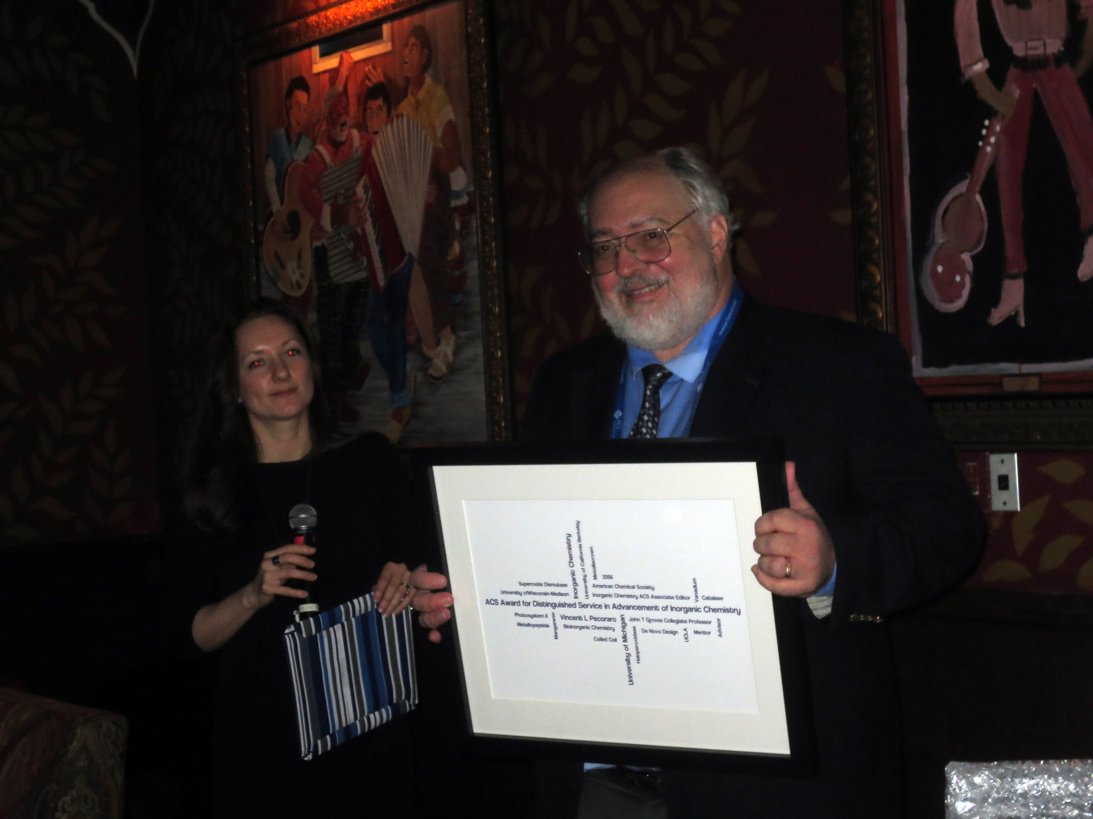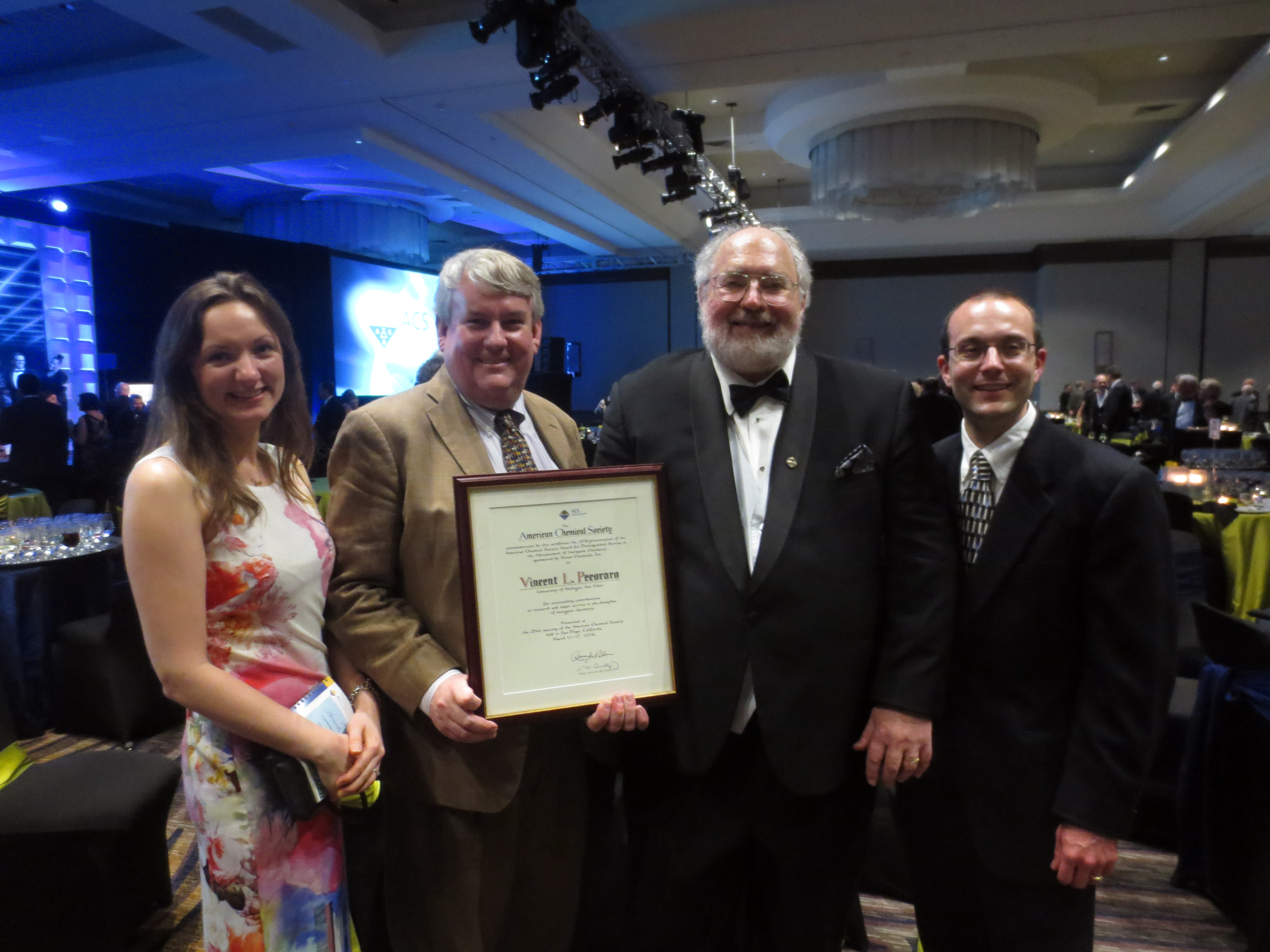 Anna Peacock, Brian Gibney, and Curt Zaleski pose with Vince and his award.