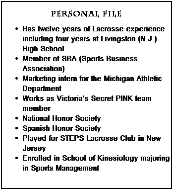 Michigan Lacrosse is the fourth team that Arielle has captained (lacrosse, soccer, and basketball in high school)