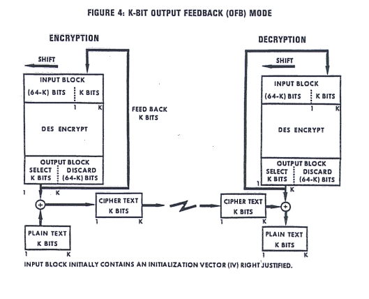 After the publication of FIPS 81, it was discovered that when less that 64 bits of feedback are used in the OFB mode, there is a risk of generating short cycles. That is, when the same key is used, and multiple encryptions or decryptions have occurred, then the resulting output block may be equal to an input block from a previous iteration. If that occurs, then further encryption or decryption using the same key will result in a repetition of previously generated output and input blocks. This increases the risk of a cryptanalyst recovering the original plaintext. Because of this short cycle property, NIST does not support the use of the OFB more for any amount of feedback less than 64 bits. Note that this short cycle property is not a problem with the DES algorithm, and would occur using any block cipher in a similar manner.